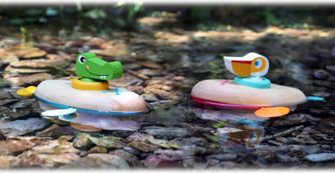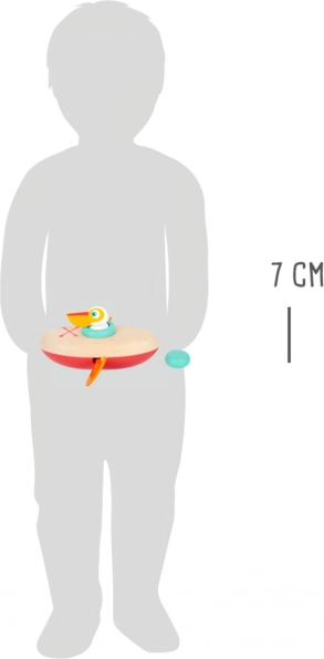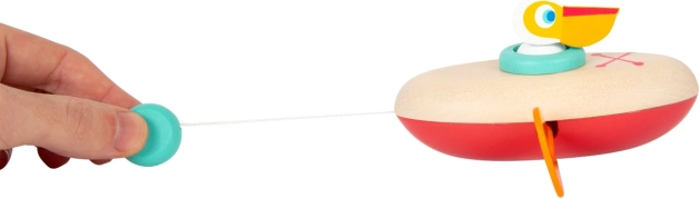 Un petit aventurier aquatique qui ravira les enfants dès 2 ans. Il suffit de le remonter plusieurs fois, les pagaies se mettent à tourner et le pélican part en balade sur l’eau. Après le bain, séchez simplement le jouet afin qu’il conserve longtemps ses qualités.