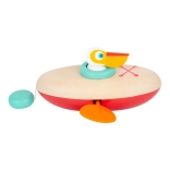 Un pélican joyeux dans un canoë de la marque SMALL FOOT se déplace tout seul à la surface grâce à un mécanisme à remonter. La combinaison de bois et de plastique de qualité garantit résistance et longévité. Idéal pour le bain comme pour la piscine, il développe la motricité fine et la compréhension de la relation de cause à effet.