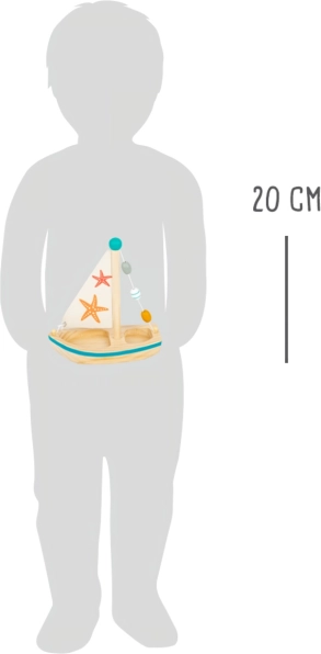 Un voilier en bois au motif d'étoiles de mer est prêt pour des aventures aquatiques dans le bain, à la piscine et à la mer. Il possède une coque flottante, une décoration de perles en bois et suffisamment d'espace pour vos propres figurines. Une excellente alternative écologique aux jouets en plastique, adaptée à partir de 24 mois. Dimensions 17 × 8,5 × 20 cm.