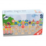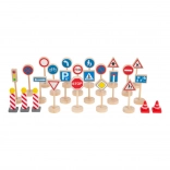 L’ensemble de 25 panneaux de signalisation en bois et accessoires (p. ex. des cônes) aide les enfants à comprendre les règles de circulation dans des scénarios de jeu réalistes. Grâce à des symboles lisibles et à des socles stables, ils sont faciles à manipuler et constituent un excellent complément aux tapis de circulation comme aux circuits de train.