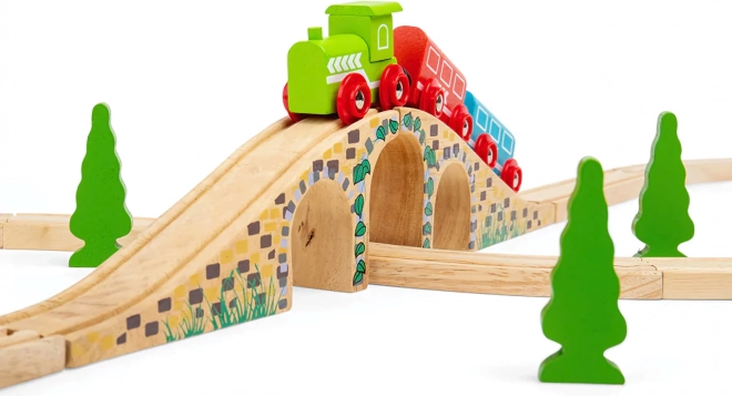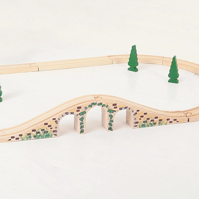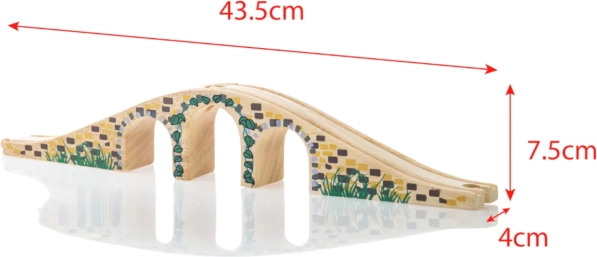 Ce pont élégant à trois arches est un complément parfait à tout circuit de train en bois. Grâce aux détails réalistes de briques de pierre et à sa surface lisse, il apporte du relief et un attrait visuel à votre réseau. Il permet aux trains de passer au-dessus et en dessous du pont, créant ainsi des scénarios de jeu amusants.