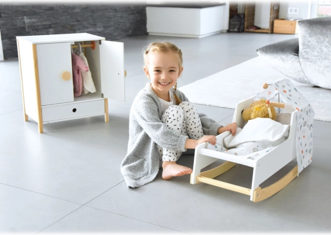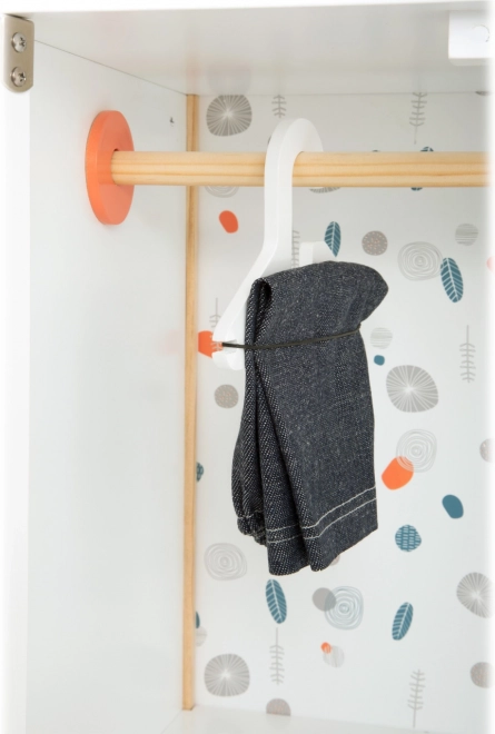 Gardez les vêtements et accessoires de poupées parfaitement organisés grâce à cette armoire en bois spacieuse au design scandinave. Elle offre une tringle avec cintres, des étagères amovibles et un tiroir pratique. Grâce à ses bords arrondis et à ses couleurs neutres, elle s’intègre parfaitement dans toute chambre d’enfant et encourage l’apprentissage de l’ordre ainsi que le développement des compétences de soin.