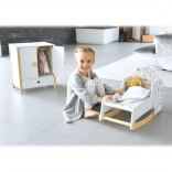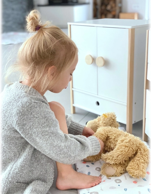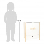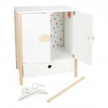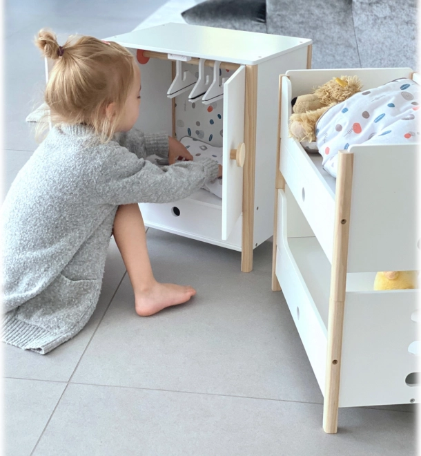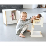 La structure en bois robuste, la fabrication stable et les bords arrondis assurent un jeu confortable et sécurisé. L’armoire favorise l’autonomie, le sens de l’ordre et stimule l’imagination lors des jeux de soin des poupées.