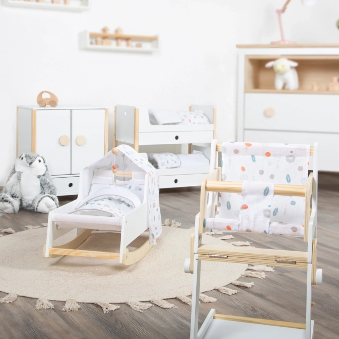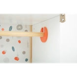 Cette armoire pour poupées de la gamme Little Button associe lignes épurées, matériaux naturels et aménagement intérieur fonctionnel. Tout est à portée de main pour les enfants : une tringle avec cintres pour suspendre les petites robes, des étagères amovibles pour les accessoires et un tiroir spacieux pour les petits objets. Son style minimaliste aux teintes douces s’intègre naturellement aux intérieurs contemporains.