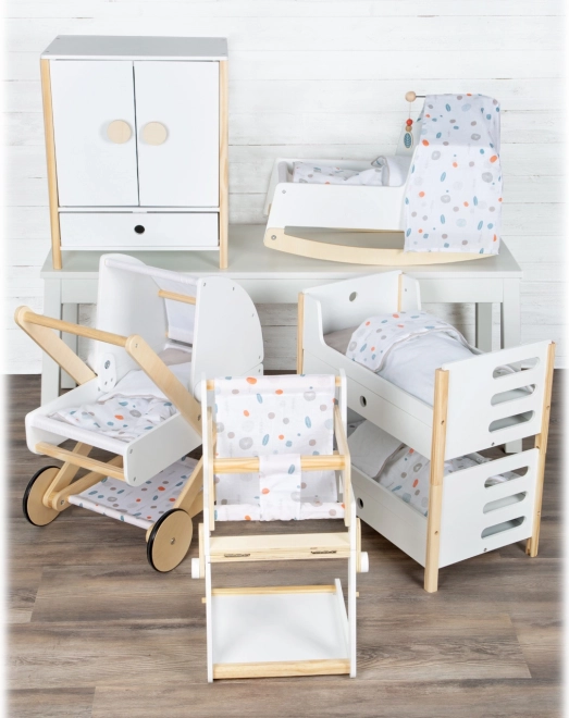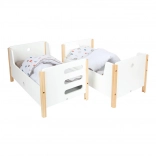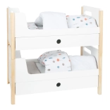 L'emballage comprend un linge de lit aux couleurs neutres et des couettes oversize qui accueillent confortablement des poupées ou peluches jusqu'à 46 cm. Les tiroirs sous chaque lit offrent un rangement astucieux pour les vêtements et petits accessoires. Un complément idéal pour la chambre d'enfant comme pour un coin poupées stylé au sein de la collection Little Button.