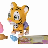 Le tigre boit de l'eau avec la bouteille fournie et sa couche change de couleur - un jeu authentique pour les enfants.