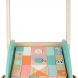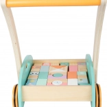 Le chariot en bois Small Foot, stable et aux couleurs pastel modernes, accompagne les premiers pas et le jeu autonome. Il contient 34 cubes pour construire et apprendre les formes, possède des roues caoutchoutées pour une marche silencieuse et sûre, ainsi qu’un espace de rangement pratique.
