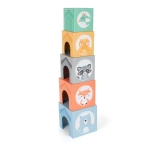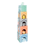 La tour empilable « Pastel » combine des cubes solides en carton avec des animaux en bois dans un design pastel moderne. Chaque face des cubes propose un indice pour l’ordre correct, permettant aux enfants d’apprendre, en jouant, le tri et la perception de l’espace. Grâce aux petites fenêtres et portes, les animaux peuvent « habiter » à l’intérieur, ce qui stimule l’imagination et le jeu de rôle.