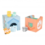 Les cubes peuvent être empilés en une tour haute ou imbriqués les uns dans les autres. Les fenêtres et petites portes invitent à des cache-cache avec les animaux et stimulent l’imagination ainsi que la motricité fine.