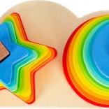 Tour empilable en forme d'arc-en-ciel colorée et amusante pour le développement de la motricité des enfants, la reconnaissance des formes et des couleurs.