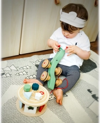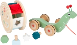 Nous vous présentons un adorable escargot en bois à ficelle, qui non seulement amuse mais aide aussi au développement de votre enfant. Grâce à sa légèreté et ses roues facilement tournantes, il est idéal pour les enfants qui commencent à marcher, soutenant leur coordination et leur équilibre. De plus, l'escargot sert de trieur avec cinq formes différentes, stimulant les capacités cognitives et la motricité fine.