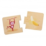 Apprenez et amusez-vous avec ce jeu en bois qui enseigne à votre enfant quels animaux mangent quoi. Puzzle, mémo et jeu d'appariement en un seul paquet.