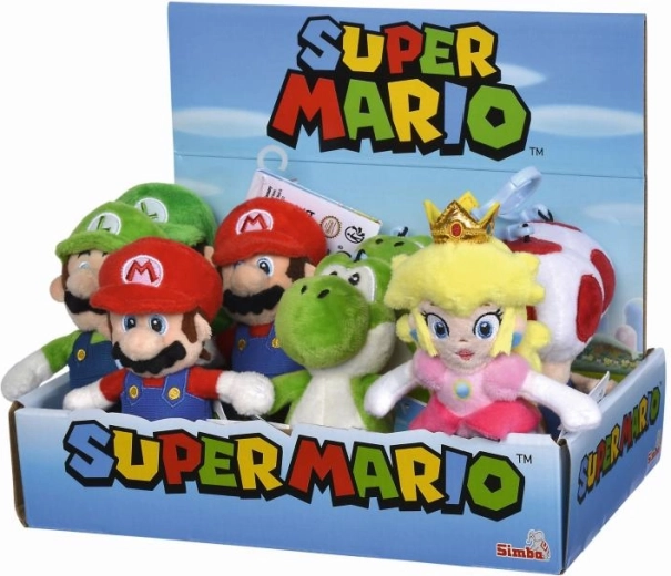 Porte-clés figurine sous licence Super Mario. Taille 12,5 cm. 5 modèles (4x Mario, 3x Luigi, 2x Yoshi, 2x Toad et 1x Peach). Présentoir de 12 pièces.