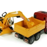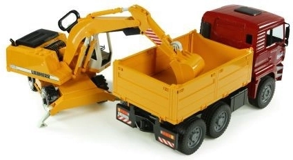 Ce formidable coffret de construction de la marque Bruder comprend un camion MAN TGA avec pneus souples et une benne basculante pratique. Il est livré avec une pelle Liebherr fonctionnelle, dotée de béquilles de stabilisation, de pneus profilés et d’un godet avec cabine rotative à 360°. Le produit est fabriqué en Allemagne avec des matériaux résistants.