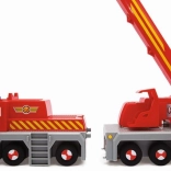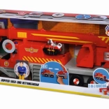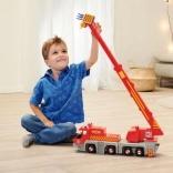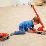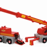 La grue pivote en douceur tout autour et sa flèche s’étend jusqu’à 75 cm. On trouve aussi un canon à eau avec fléchettes en plastique pour « éteindre » en toute sécurité, ainsi qu’un treuil mécanique pour les missions de sauvetage.