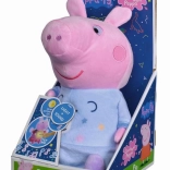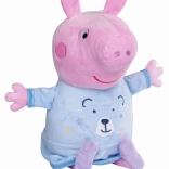 Matière ultra douce, pyjama bleu à motifs d’étoiles et expression amicale de Peppa invitent aux câlins et au jeu.