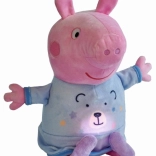 Adorable veilleuse peluche Peppa Pig en pyjama bleu qui aide les enfants à s’endormir paisiblement grâce à une berceuse et une agréable lumière nocturne. La musique joue jusqu’à 15 minutes et la lumière reste allumée 30 minutes, puis tout se désactive automatiquement. Peluche toute douce et hauteur idéale de 25 cm à câliner avant le coucher.