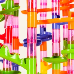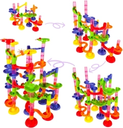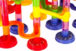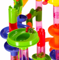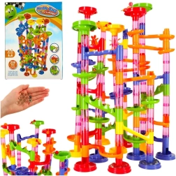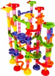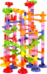 Piste à billes colorée pour enfants et adultes avec 219 pièces XXL offrant d’infinies possibilités de construction. Construisez de hautes tours, des tunnels en spirale et des toboggans, et faites courir les billes. Stimule la créativité, la pensée spatiale et la motricité fine, idéale comme jouet éducatif et divertissement pour toute la famille.