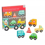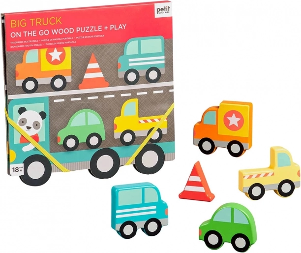 Puzzle en bois robustes pour les tout-petits sur le thème d’un grand camion. Un jouet ludique qui développe la motricité et la créativité des enfants.