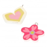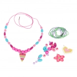 Cinq couleurs, des formes variées et trois pendentifs joyeux permettent de créer des bracelets et des colliers originaux selon l’imagination.