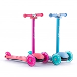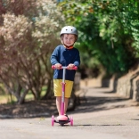 Le guidon est réglable sur trois hauteurs — 58 cm, 67 cm et 76 cm — permettant à la trottinette d'évoluer avec votre enfant. Elle est équipée d'un frein arrière pour renforcer la sécurité pendant la conduite. La construction combine des plastiques robustes et sûrs avec des alliages légers, pour une trottinette légère et facile à manier.