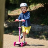 La trottinette à trois roues offre stabilité et sécurité pour un maniement aisé par les enfants.