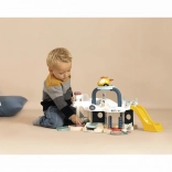 Le garage est équipé de nombreuses fonctions comme un ascenseur, un lave-auto, un héliport et une rampe de glisse qui stimulent l'imagination des enfants.