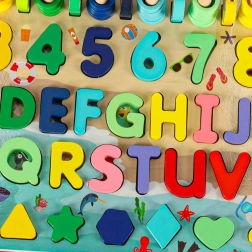 - Trieur de formes et de chiffres – l’enfant associe les pièces aux ouvertures correspondantes.