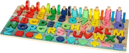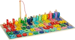 Ce kit didactique créatif offre de nombreuses façons d’apprendre en s’amusant. Grâce au trieur, l’enfant exerce la reconnaissance des formes, des chiffres et des lettres, avec le boulier il acquiert les bases du calcul et avec la canne magnétique il profite d’un jeu de pêche amusant qui renforce la coordination œil–main.