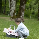 Le siège auto encourage l’imitation des soins apportés à un vrai bébé et développe l’imagination ainsi que les compétences sociales des enfants.