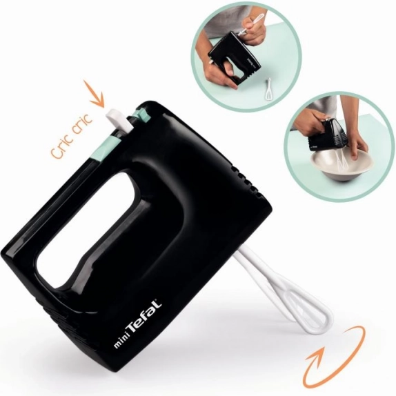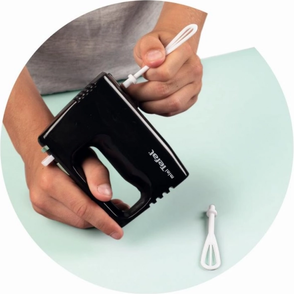 Mini fouet Tefal Express est l'accessoire idéal pour chaque ensemble de cuisine pour enfants. Les fouets tournent mécaniquement en appuyant sur un bouton et ne nécessitent aucune pile.