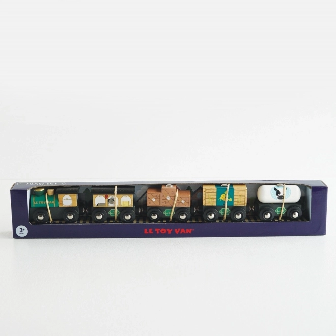 Adorable train de marchandises en bois de couleur verte de Le Toy Van, prêt pour des aventures pleines d’imagination. Fabriqué en bois durable, peint à la main avec des peintures à base d’eau non toxiques et doté de attaches magnétiques pour relier facilement les wagons. Compatible avec la plupart des circuits de trains en bois, il développe la motricité, le langage et les compétences sociales. Idéal pour les enfants dès 3 ans.