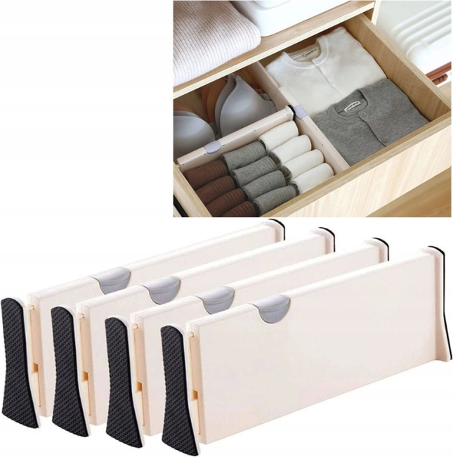 Organisateur de tiroir extensible très pratique. Le séparateur vous permet d’organiser facilement et à moindre coût votre collection de cosmétiques ou de sous-vêtements et de diviser le tiroir en deux compartiments de taille libre. Grâce à la possibilité de pliage et de dépliage de 28 cm à 43 cm de largeur et à un mécanisme de verrouillage robuste, la cloison s’adapte parfaitement au tiroir.