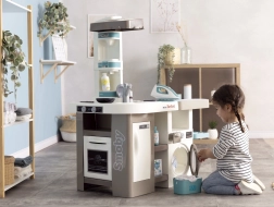 Offrez aux enfants un superbe univers de jeux de rôle avec la cuisine SMOBY TEFAL Studio avec buanderie. Des fonctions réalistes comme une plaque de cuisson électronique avec 2 sons de cuisson, un évier avec robinet, un four, un réfrigérateur et une hotte avec machine à espresso et boisson gazeuse intégrée garantissent des heures de divertissement créatif.