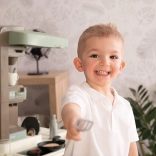 La machine à café à capsules et la machine à boisson pétillante avec le son « cric cric » élargissent les possibilités de jeu et apprennent aux enfants les rituels de table.
