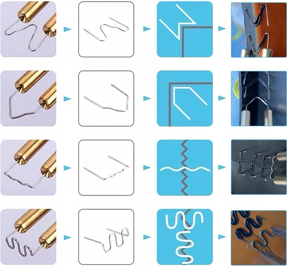 Le set comprend quatre types d’agrafes différents pour diverses applications dans le travail du plastique.