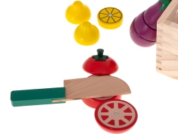 Légumes magnétiques en bois à découper dans une caissette avec accessoires