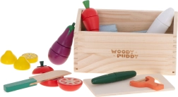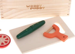 Le set est idéal pour jouer seul ou cuisiner ensemble avec les parents : il favorise la coordination œil–main, l’enrichissement du vocabulaire (noms des aliments, des parties) et le jeu de rôle créatif. La jolie caissette en bois aide à garder l’ordre et permet un rangement rapide.