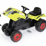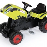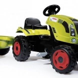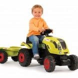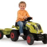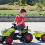 Tracteur à pédales CLAAS avec remorque verte