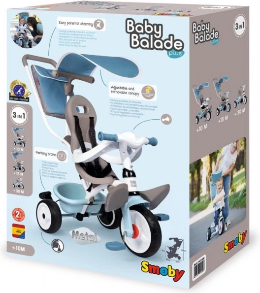 SMOBY tricycle 3-en-1 Baby Balade Plus bleu