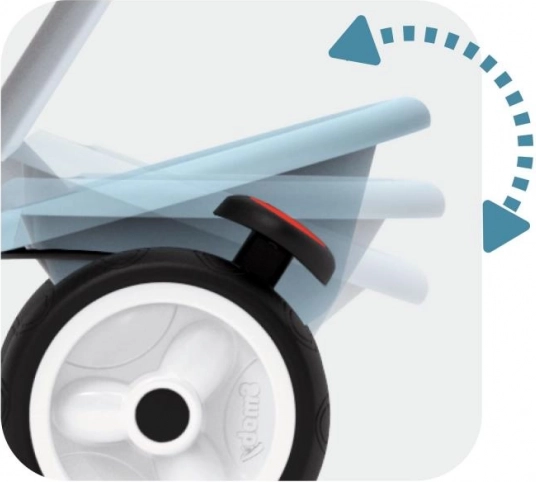 SMOBY Baby Balade Plus est un premier tricycle fiable qui accompagnera votre enfant de ses premières promenades jusqu’à la conduite autonome. Les parents apprécieront la barre de poussée à hauteur réglable et le verrouillage de la direction pour une manipulation aisée, ainsi que le frein de stationnement pour des arrêts en toute sécurité. Grâce au mécanisme de roue libre, la roue peut tourner tandis que les pédales restent immobiles – idéal lorsque l’adulte guide.