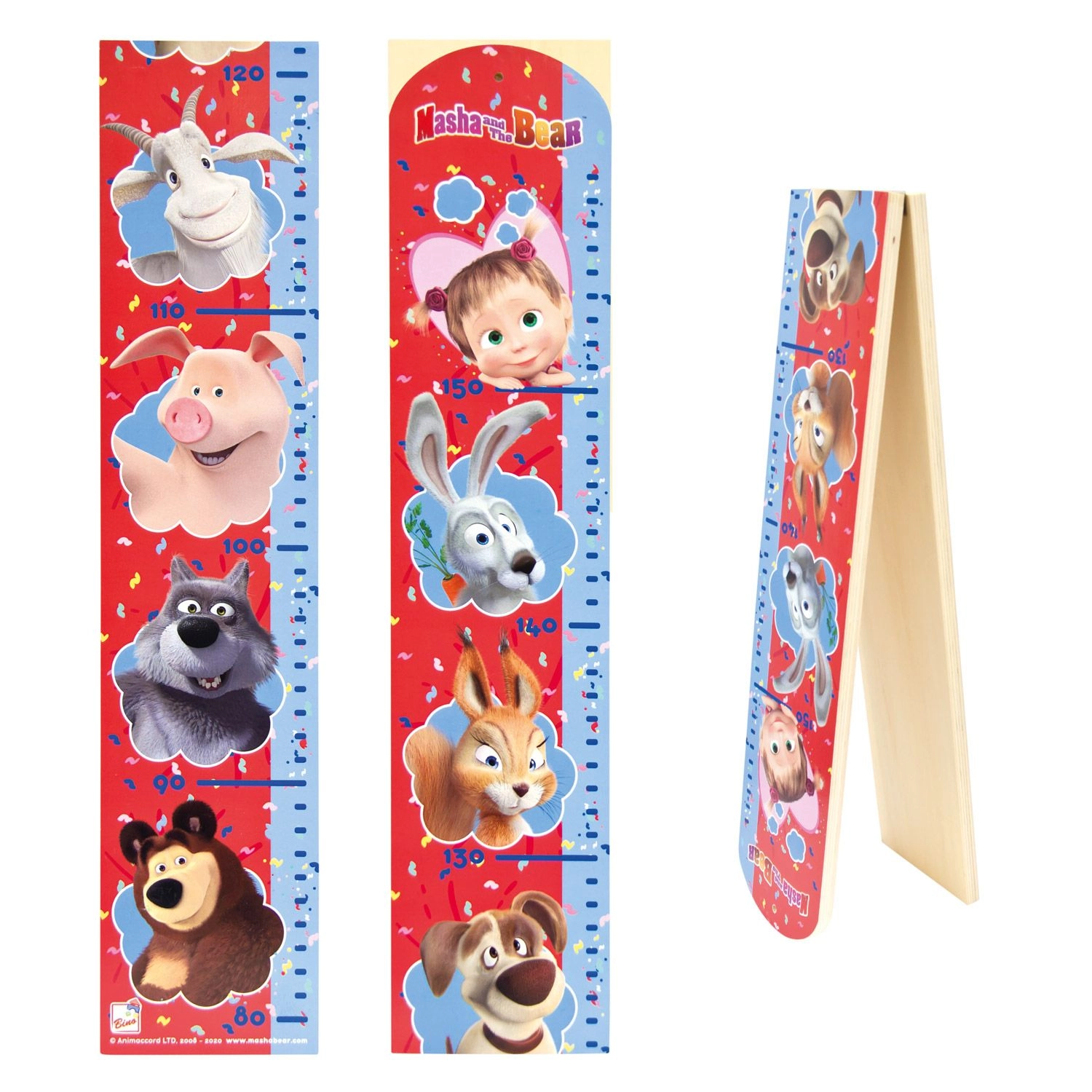 Le mètre de croissance en bois (MDF) avec des illustrations joyeuses de la série Macha et l’Ours s’intègre parfaitement dans toute chambre d’enfant. L’échelle imprimée permet d’enregistrer clairement la croissance de 80 à 160 cm, gardant ainsi un joli souvenir d’enfance.