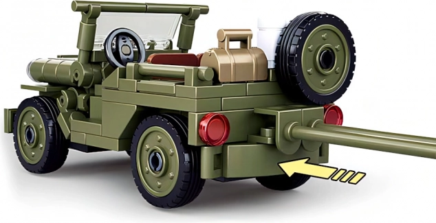 La combinaison du jeep, de la remorque et du canon offre de nombreux scénarios de jeu – de la reconnaissance à la défense de convoi. Des détails soignés et des proportions fonctionnelles donnent à la construction un aspect réaliste.