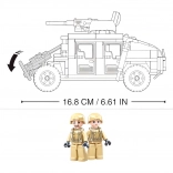 Modèle de Hummer aux détails soignés, arme pivotante et pneus robustes pour des scènes de terrain authentiques.