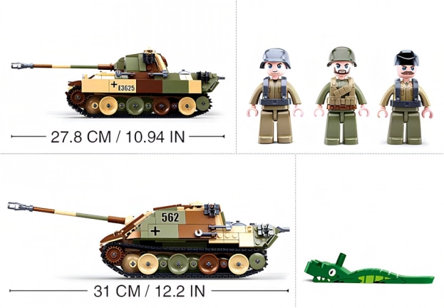 Set de construction de tank (2 versions), 3 figurines dont un tireur au bazooka