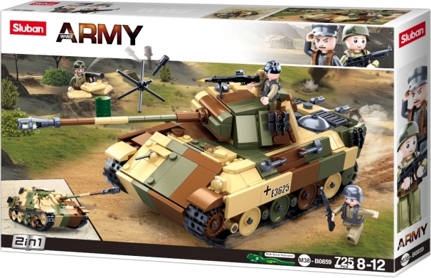 Construisez votre propre matériel militaire avec le set Sluban Armytank moyen camouflé 2-en-1 offrant deux variantes de montage. L’ensemble avec 725 pièces et 3 figurines développe la logique, la créativité et la motricité fine. Les pièces sont compatibles avec LEGO, Cobi et Mega Bloks et fabriquées en plastique de qualité, résistant.