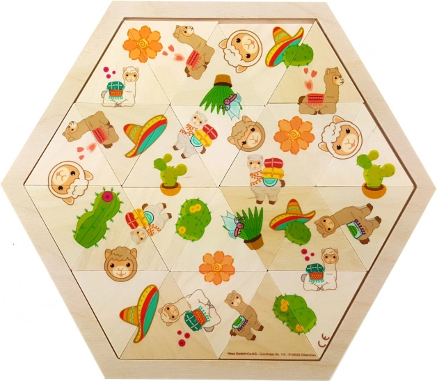 Cette mosaïque en bois HESS de haute qualité avec un adorable motif de lama est un jouet idéal pour les premiers exercices de logique. Les enfants apprennent de manière ludique à reconnaître les formes et les couleurs, développent leur patience et leur perception spatiale. Grâce au cadre en bois robuste, les pièces se placent facilement et restent bien en place.