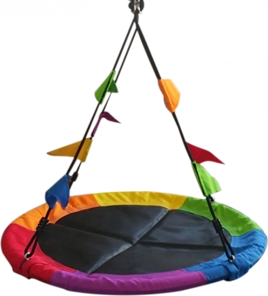 Balançoire nid de cigogne avec drapeaux colorés pour enfants