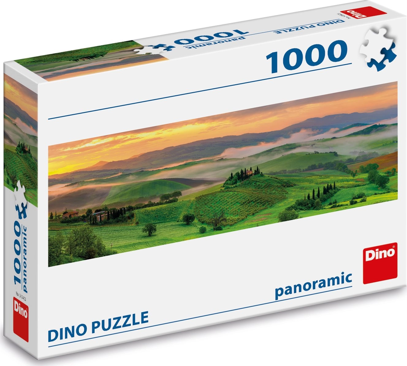 Le puzzle panoramique DINO au motif d’un coucher de soleil magique sur un paysage verdoyant offre une atmosphère paisible et une activité créative concentrée. Grâce à des découpes précises et à un carton robuste, les pièces s’emboîtent parfaitement et l’image finale de 96 × 32 cm se prête idéalement au collage et à l’encadrement.