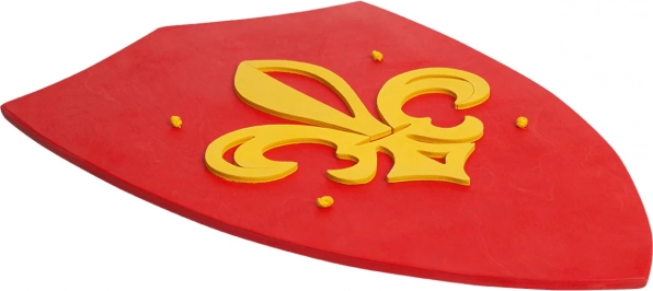 - ANJOU, bouclier rouge avec fleur de lys jaune